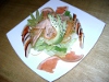 Ensalada de verdura con camarón empanizado. |